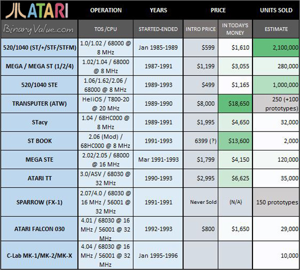 This is some basic information, and sales figures, regarding the family of Atari's 16/32-bit computers.